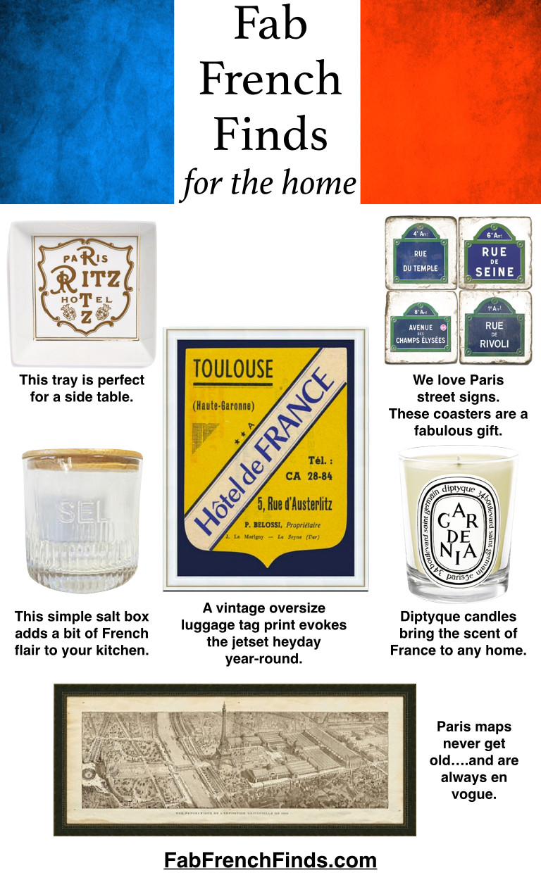 Any of these fabulous finds are the perfect accent for a Francophile's home. Why? Because they are fun, beautiful and inspiring. They also show your love of France and serve as wonderful conversation pieces.